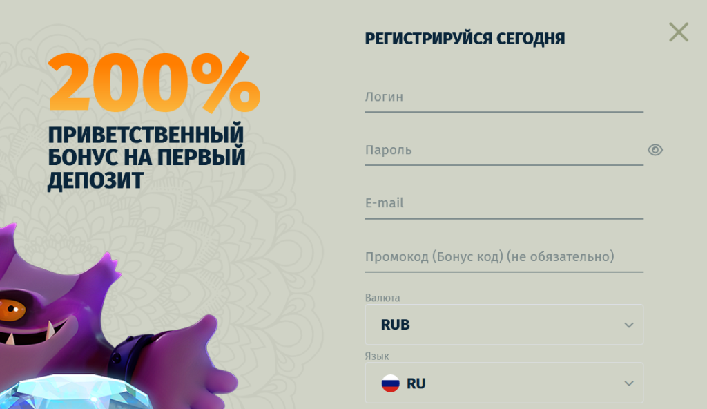 На сайте довольно простая и удобная регистрация, вам лишь придумать логин, указать адрес электронной почты, придумать пароль и если есть промокод то ввести его в нужное поле!