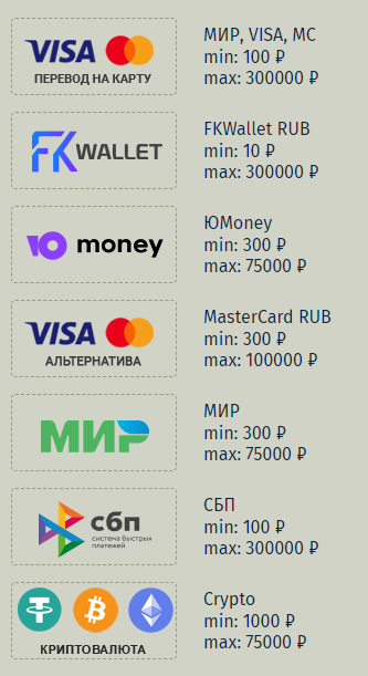 Способы пополнения и выплаты выигрышей: